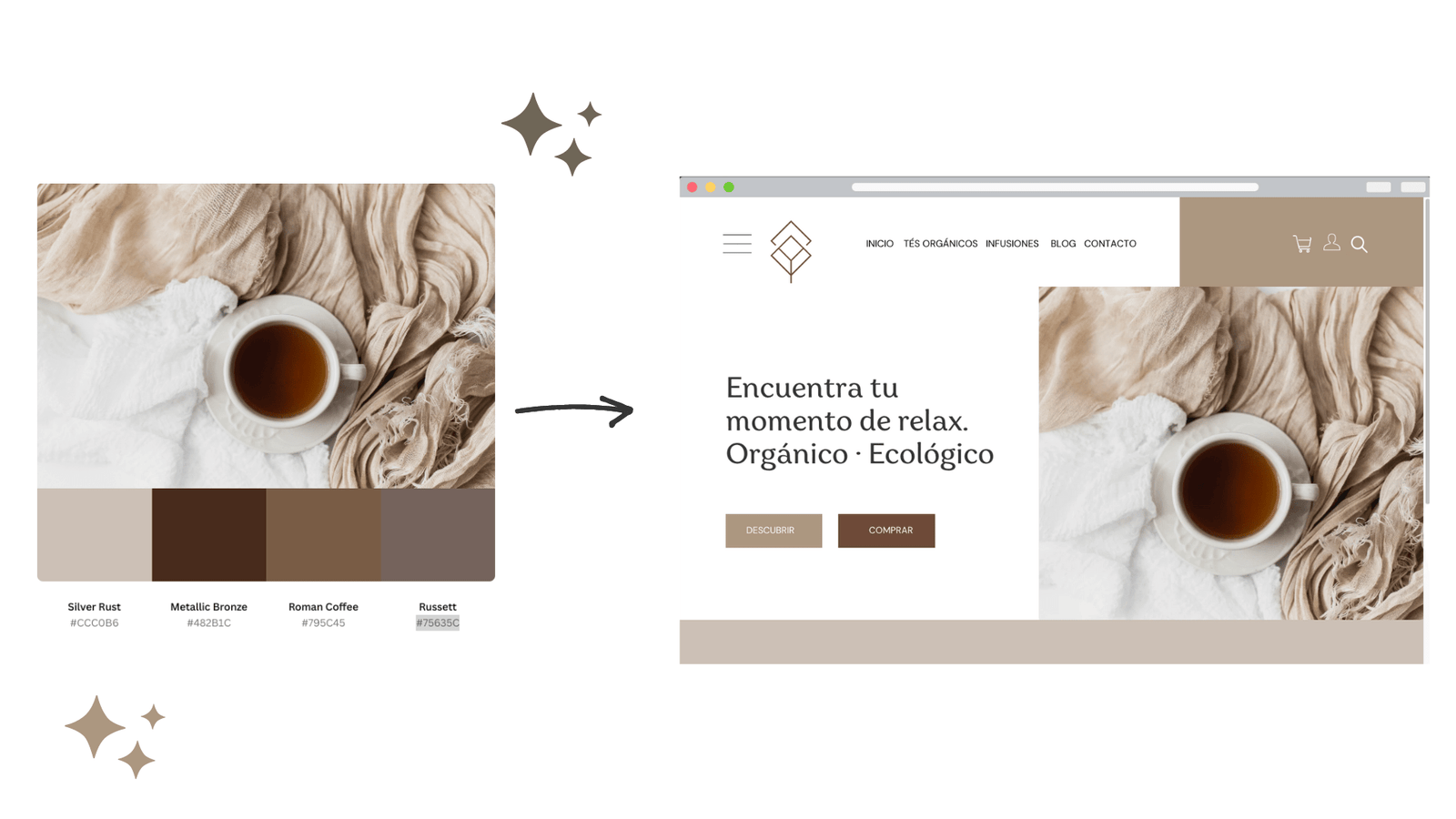 Solo tienes que copiar los códigos de color y utilizarlos en tu web y en la identidad de tu marca